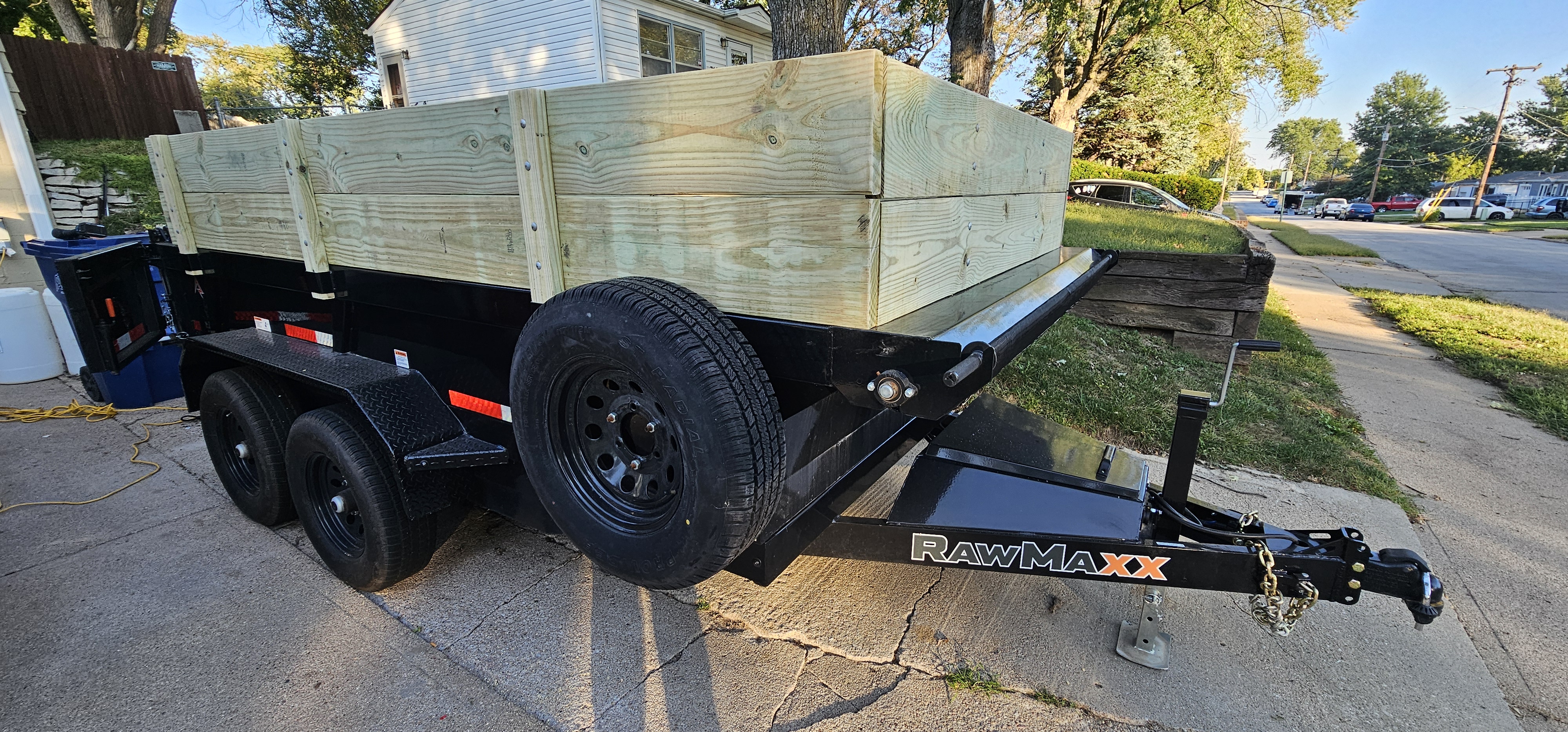 Our 2025 RawMax 12-foot, 10,000 lb dump trailer is the largest dump trailer a ½-ton truck can tow, making it a top choice for Omaha homeowners, landscapers, and contractors. Built with extended sides, it’s ideal for bulky loads like brush, trash, and construction debris. This trailer can also handle rock, sand, and dirt, though heavy materials should not be loaded to the top for safe towing. Equipped with dual rear bar doors, a spreader gate for controlled unloading, and loading ramps, it’s designed for both convenience and reliability. Every rental includes straps and tie-downs so your load stays secure. Whether you’re tackling a clean-out, a landscaping job, or hauling debris, this RawMax dump trailer delivers the space, strength, and safety you need.